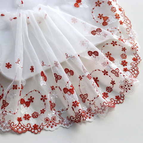 Вышитая красная Золотая цветная нить маленькая вишневая двухцветная вышитая кружевная детская одежда детская свадебная ткань