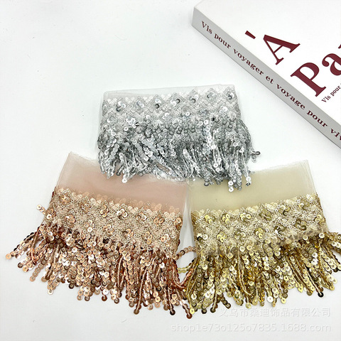 Водорастворимые клетчатые полиэфирные нити шириной 10,5 см Этническая одежда кружевные блестки с кисточками